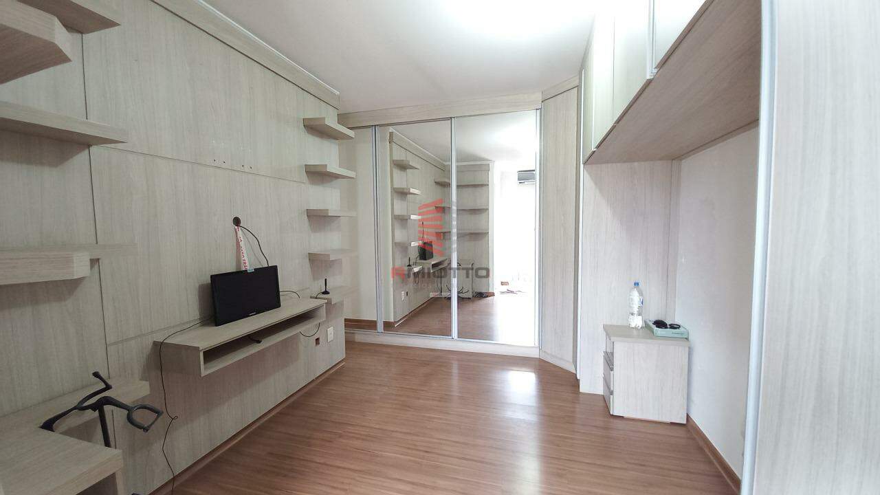 3 suítes, com box em vidro temperado, espelhos, gabinetes nas pias, iluminação embutida em led. Suíte do casal com amplo trabalho em marcenaria nos armários e espaço de trabalho e ar condicionado.